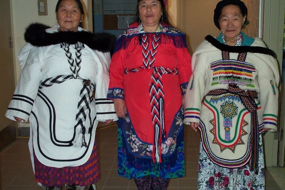 The garment represents generations of design refinement for extreme conditions, with regional variations in decoration indicating cultural identity across vast Arctic territories.