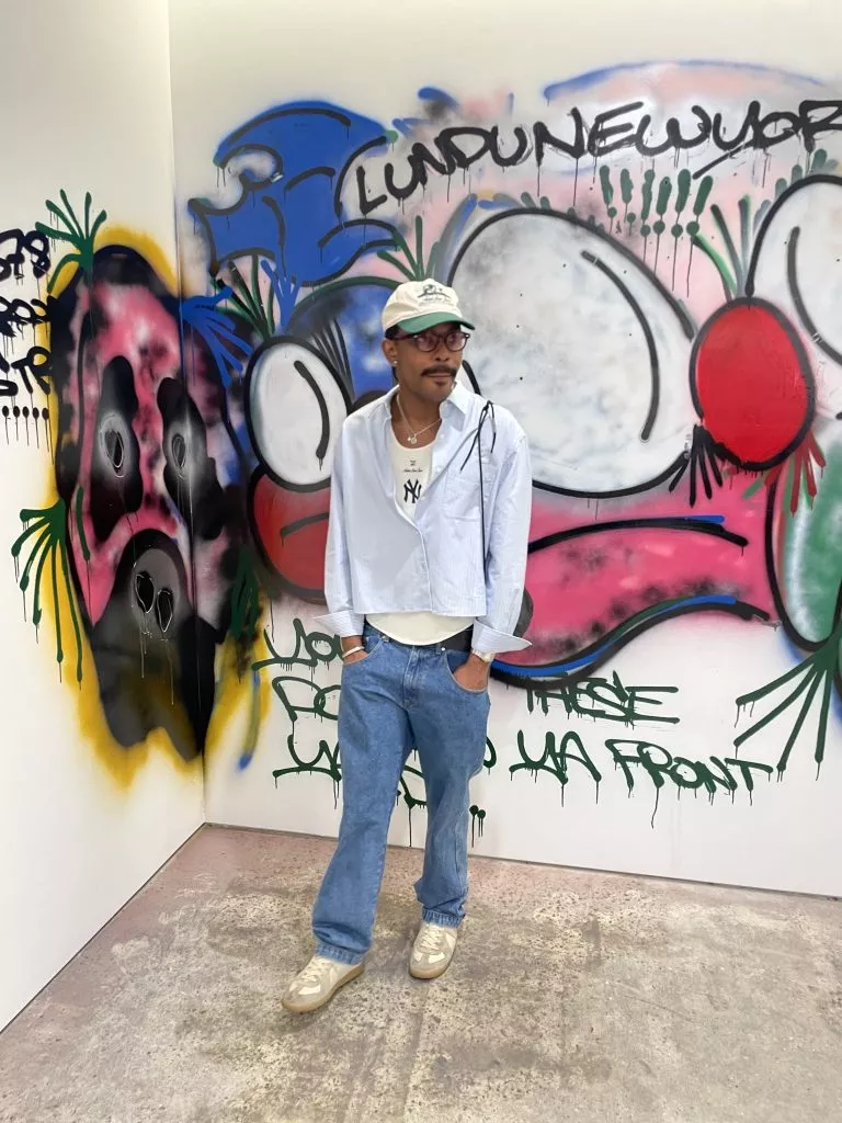As Creative Director, Jemide oversees all of Slawn’s design output, from brand collaborations and merchandise to exhibitions and campaigns. Whether it’s a Slawn × Louis Vuitton T-shirt or the now-iconic FA Cup Final pitch banner, his fingerprints are everywhere. “My job is to make the chaos coherent, to turn raw energy into something that lasts,” he explains. “I make sure the vision stays raw but consistent.”